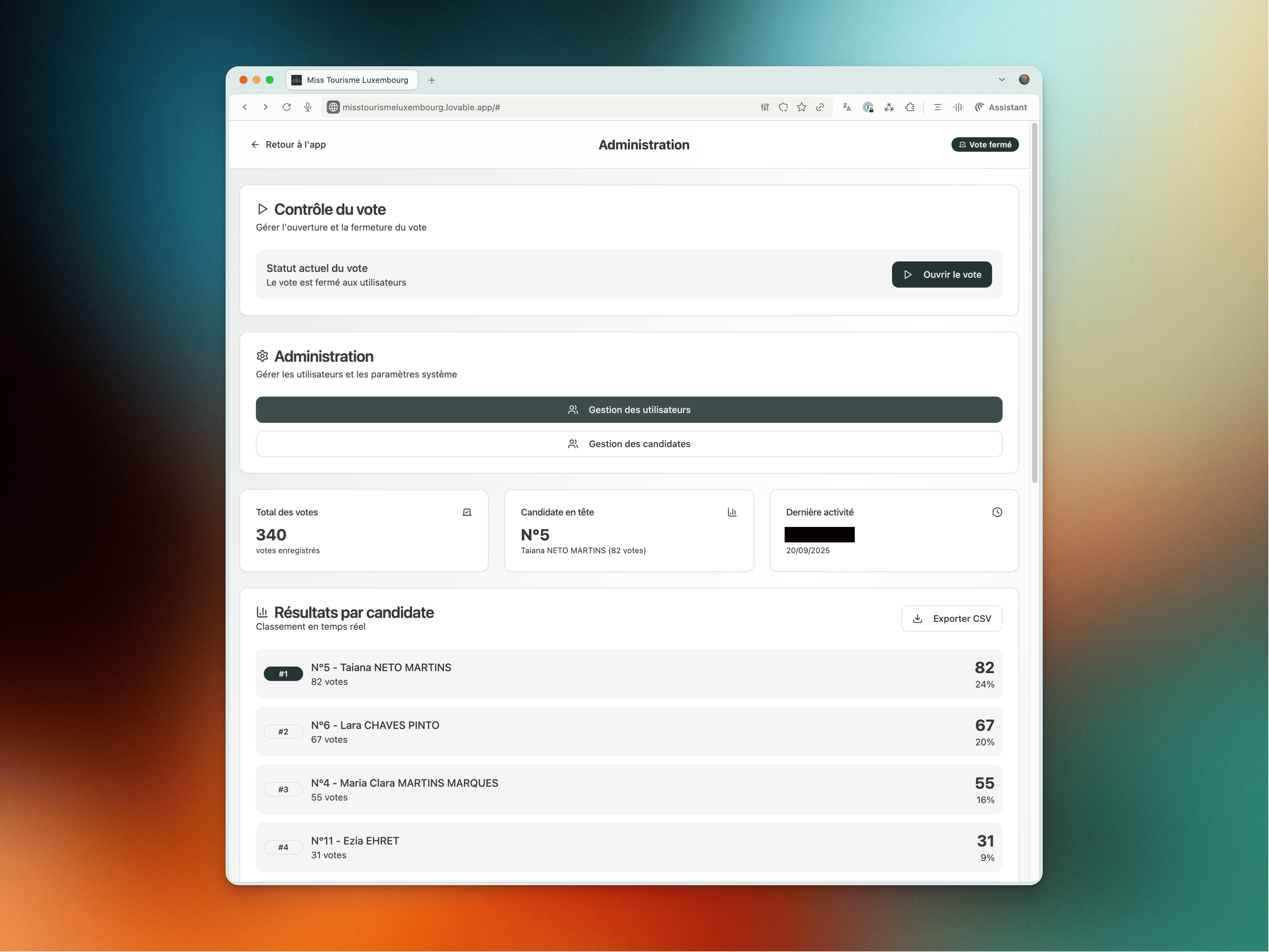 For the Miss Tourisme Luxembourg election, I designed and delivered a robust, secure, real-time online voting system in just two days. By migrating from a low-code base (Glide) to a custom Lovable + Supabase + Postmark stack, we eliminated manual post-processing (disposable emails, alias abuse), locked down API access, and achieved immediately usable results. Outcome: a smooth public experience, vote integrity, and a calm organization team on event night. View Project